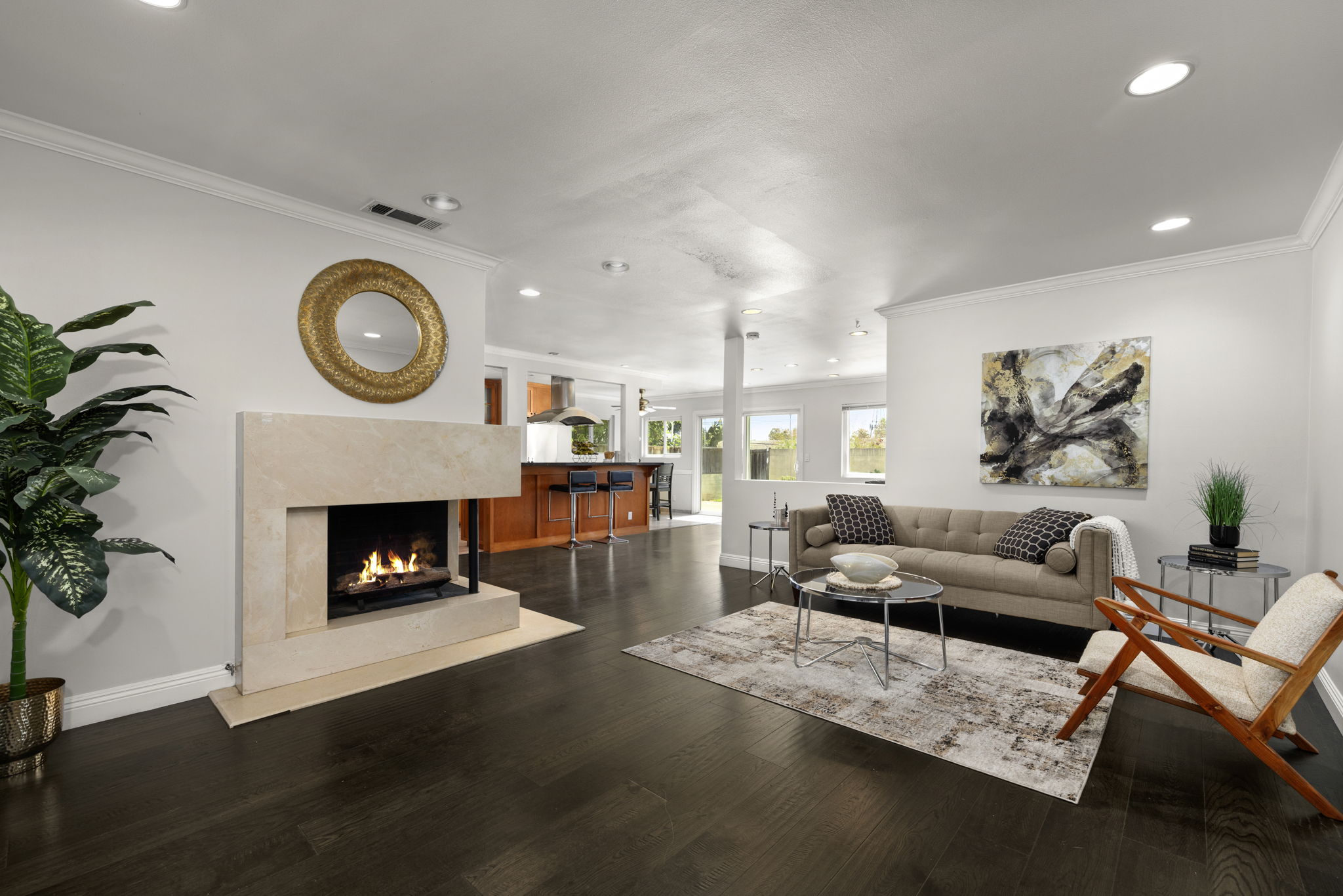 Inside, you will find a generous living room featuring recessed lighting and a cozy gas fireplace—perfect for relaxing or entertaining. Inside, the expansive great room seamlessly integrates a well-appointed kitchen with both formal and casual living areas, creating an effortless flow for everyday comfort and entertaining. Sliding doors open to a private backyard oasis, perfectly blending indoor and outdoor living for year-round enjoyment. A charming breakfast nook offers a more casual dining option. Enjoy the rich look of dark hardwood floors (installed in 2018) throughout the home. All four bedrooms are impressively sized, filled with natural light, and complemented by two bathrooms. Practical features include ample hallway storage closets, a tankless water heater, and a new roof (installed in 2020). The insulated and drywalled 2-car garage comes with built-in storage cabinets, adding even more functionality to this incredible home. Enjoy the outdoors with your private backyard retreat, which backs up directly to a tranquil greenbelt and the San Gabriel River trail—offering a peaceful path that leads straight to the beach. This is a rare opportunity to own a turnkey home in a prime location, close to parks, trails, and the best of Long Beach living. Don’t miss out!